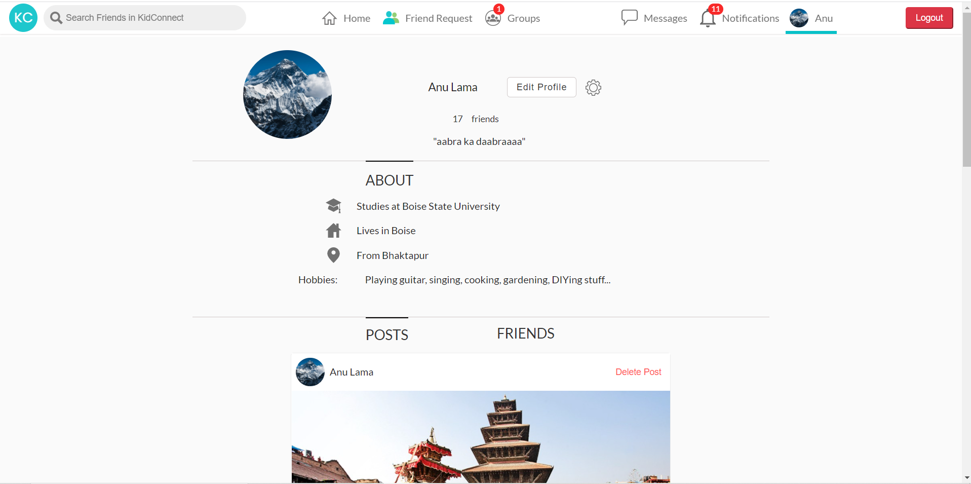KidConnect is a social networking application that I developed for the HCI lab at Boise State University (BSU). It was designed and developed to be used by children (ages 7 - 12). Some of the major functionalites of KidConnect are: creating, commenting on and sharing of post, friending, direct messaging and group creation. It laid a groundwork for further research at BSU to examine how children interact and share information with their peers within social media. The live application is used for collecting data from child subjects within lab settings due to which I am not allowed to show the working demo of the application. Please refer to the slider below to view some screenshots from KidConnect.