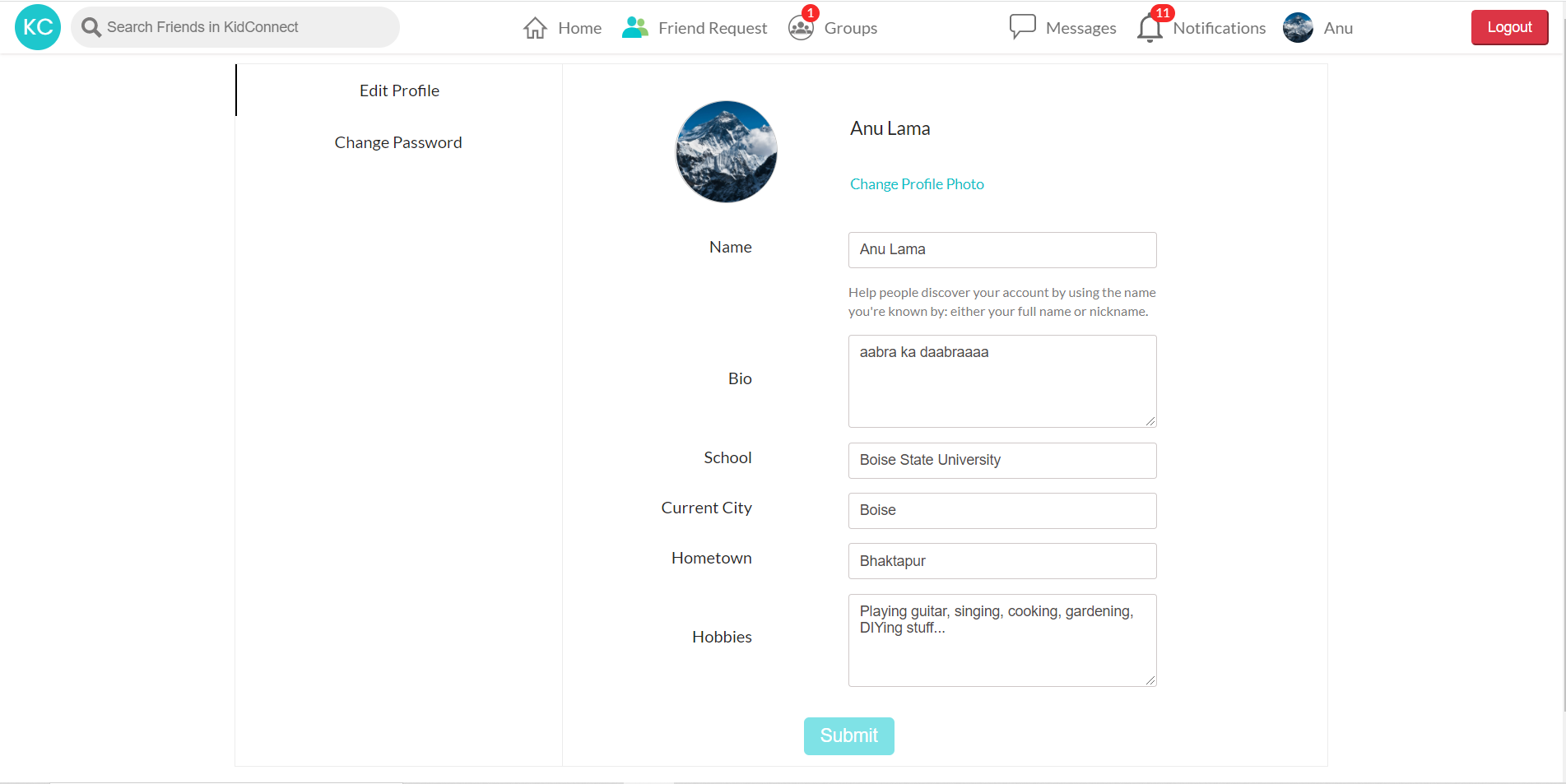 I recently graduated with a master's degree in Computer Science from Boise State University. Throughout my undergraduate and graduate years, I've programmed in several languages. I was a part of the HCI lab at Boise State University where we worked with a group of children (ages 7 to 12) to create technologies for children and lead research concerning children's online privacy, information sharing behavior, information search, etc. For my master's project, I developed "KidConnect" - a social media platform built using React and Firebase which will be put into future research to study children's information sharing behavior. With the completion of this project, I have grown a liking to web development (frontend and backend) and am looking for opportunites to grow my web development skills.